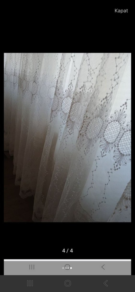 gri Nakışlı Beyaz Tül Perde