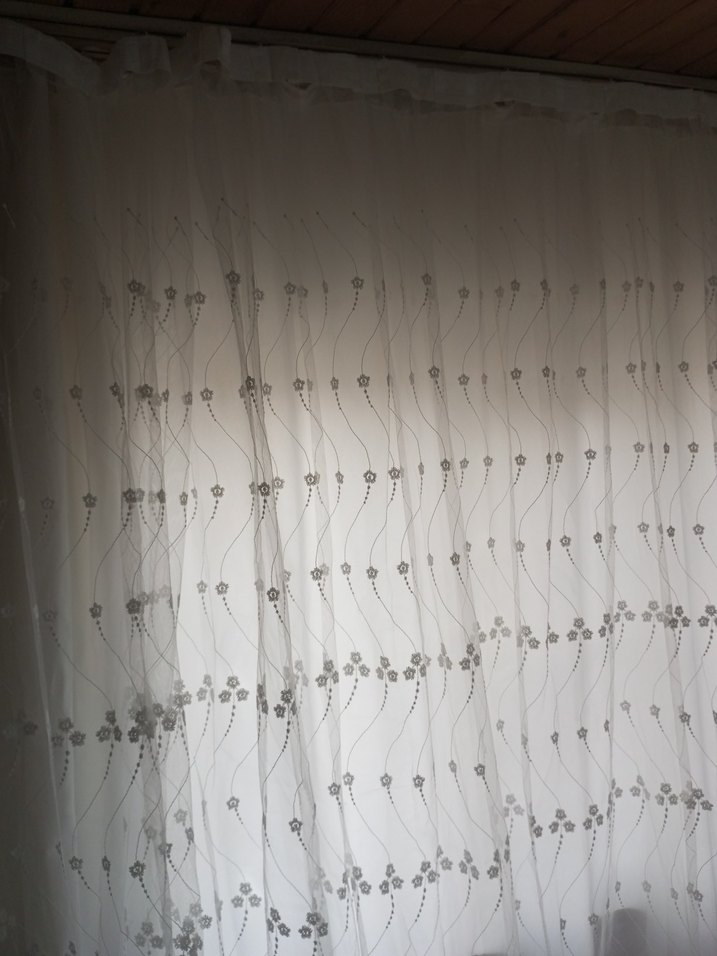 Gri nakışlı çiçek desenleriyle beyaz tül perde, klasik ve zarif bir görünüm sunar. enı. 1metre20sm uzunluk2metre20sm