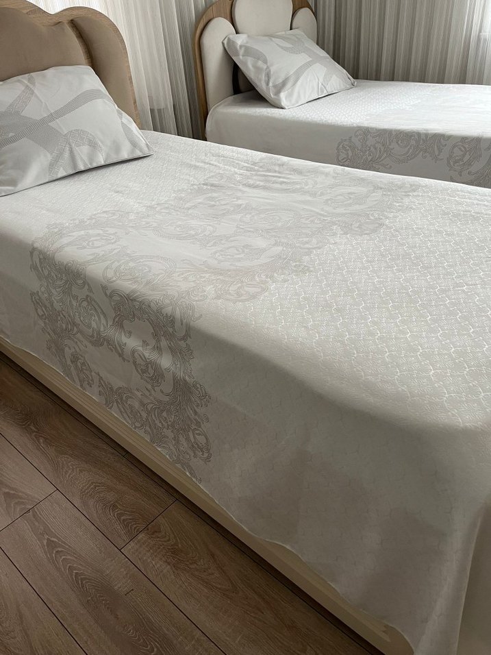 Gri nakışlı desenleriyle beyaz yatak örtüsü, yatak odanıza zarif ve sade bir görünüm kazandırır. Yumuşak kumaştan üretilmiştir. ️
