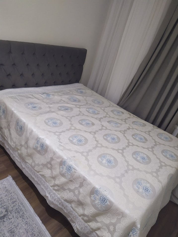 Gri nakışlı desenlere sahip beyaz yatak örtüsü, yatak odasına şık ve zarif bir dokunuş katıyor. Yumuşak kumaşıyla konfor sağlar. ️