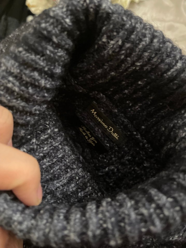 Gri renkte, nakışlı desenli, boğazlı ve uzun kollu triko kazak.