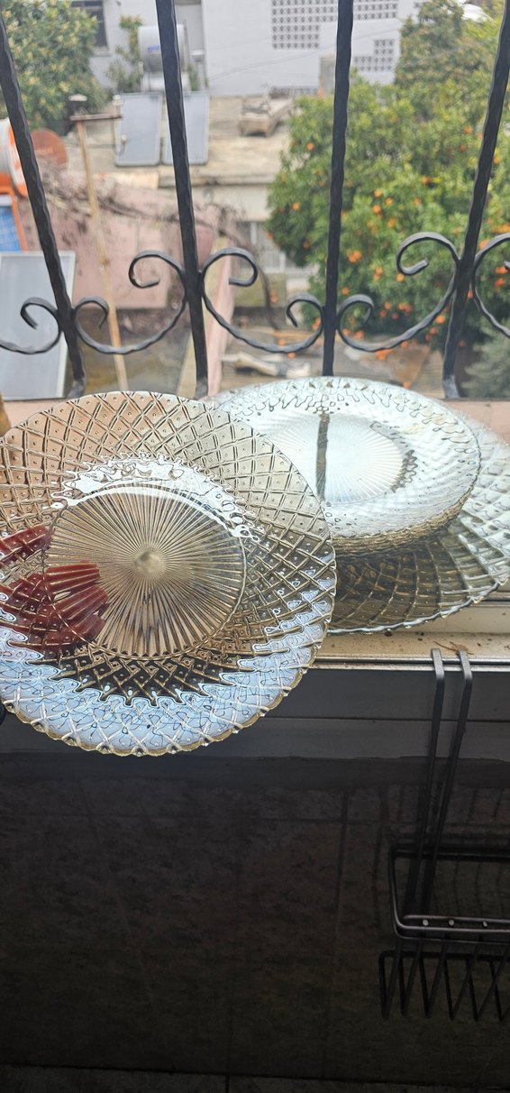 Gri renkte, nakış desenli cam tabak seti. Bohem tarzda, detaylı dokulu tasarımıyla sofralara şıklık katar. ️