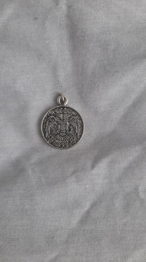 Gri renkte, detaylı zincir işçiliği ve nakışlı vintage deseni olan bohem tarzda, günlük kullanıma uygun kolye ucu.
