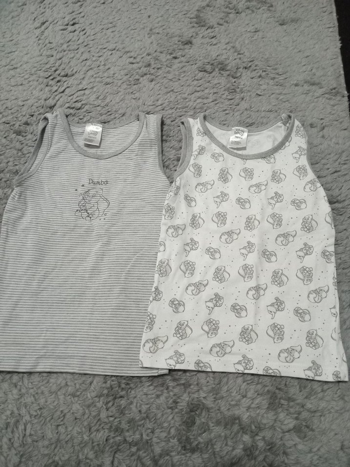 İki adet gri çocuk atleti, biri nakışlı çizgili, diğeri desenli baskılı. Günlük kullanıma uygun yumuşak kumaş.