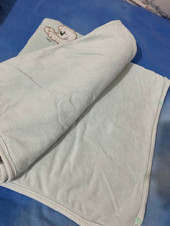Yumuşak ve sıcak gri çocuk battaniyesi, nakışlı tasarıma sahip rahat kumaştan yapılmıştır.