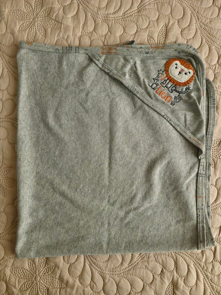 Gri renkli çocuk bornoz yumuşak ve sıcak kumaştan olup köşesinde nakışlı aslan figürü bulunmaktadır.
