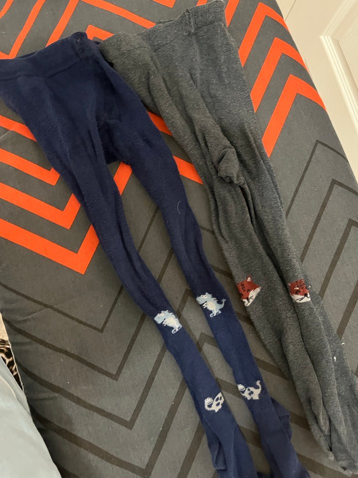 Gri renkte, ayak bileği kısmında nakışlı hayvan desenleri bulunan, sıcak tutan çocuk taytı.