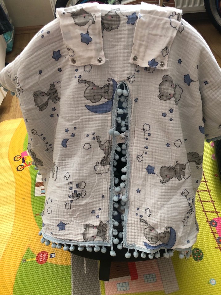 Nakışlı desenlere ve ponpon süslemeye sahip gri çocuk uyku örtüsü. Yumuşak ve rahat kumaştan üretilmiştir. Çift taraflı kullanım özelliği vardır