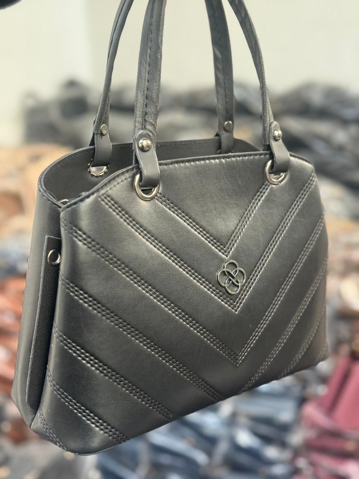 Nakışlı desenli, tokalı gri deri kadın omuz çantası. İş ve günlük kullanım için uygun, klasik şıklık ve biker tarzı bir arada.