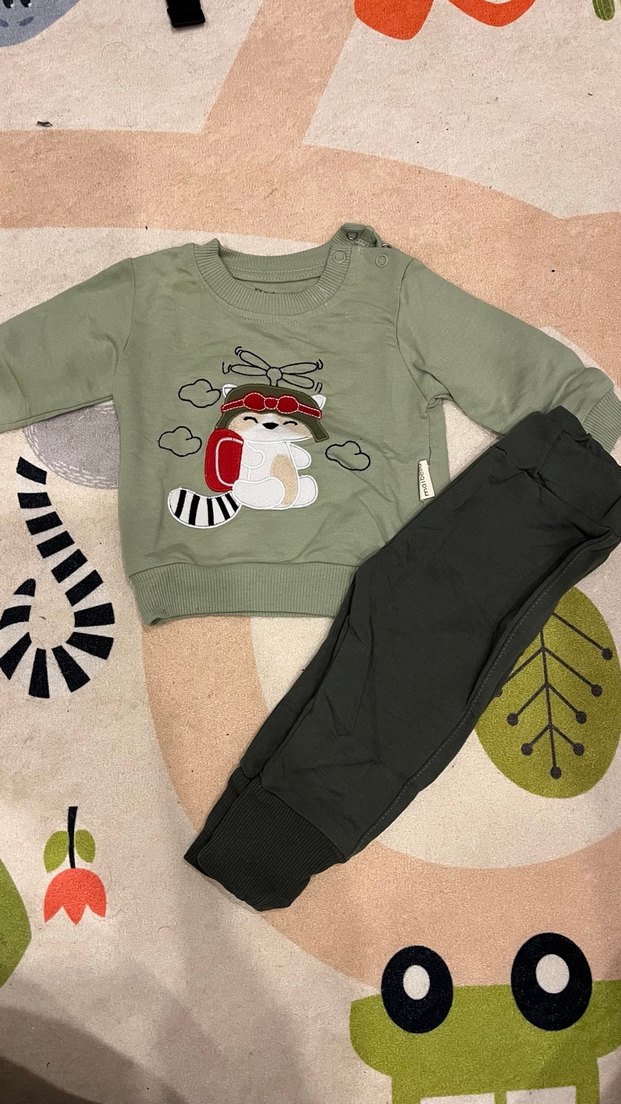 Gri Nakışlı Erkek Bebek Takım