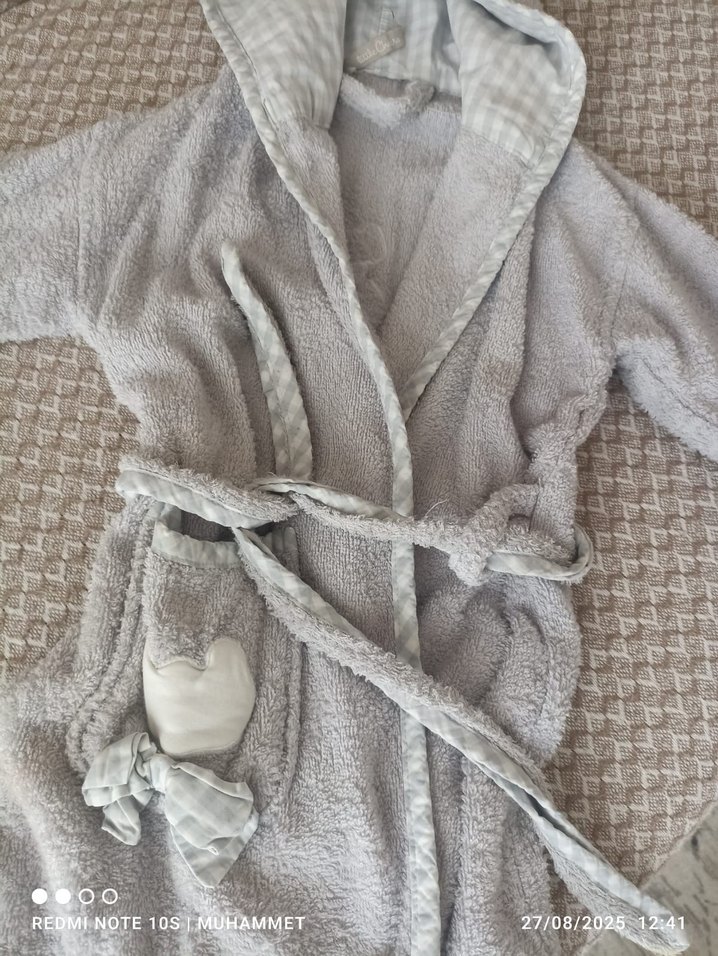 Gri Nakışlı Erkek Çocuk Bornozu