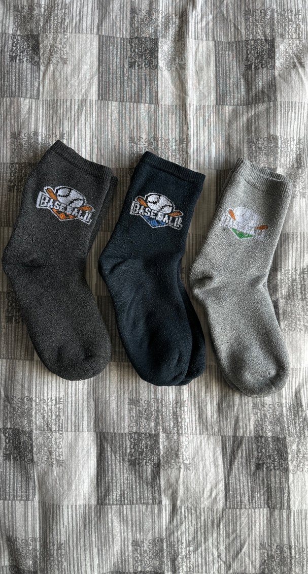 Bu set, farklı gri tonlarında üç çift erkek çorabı içerir ve her birinde nakışlı beyzbol deseni bulunur. Rahat ve günlük kullanıma uygundur ⚾.35 numara