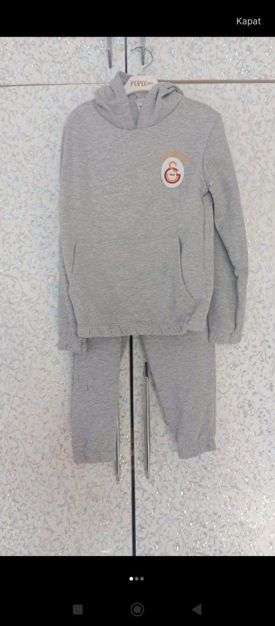 Gri renkli, nakışlı logolu ve yuvarlak yakalı erkek çocuk eşofman takımı. Örme yumuşak kumaştan, rahat sokak stili sunar.