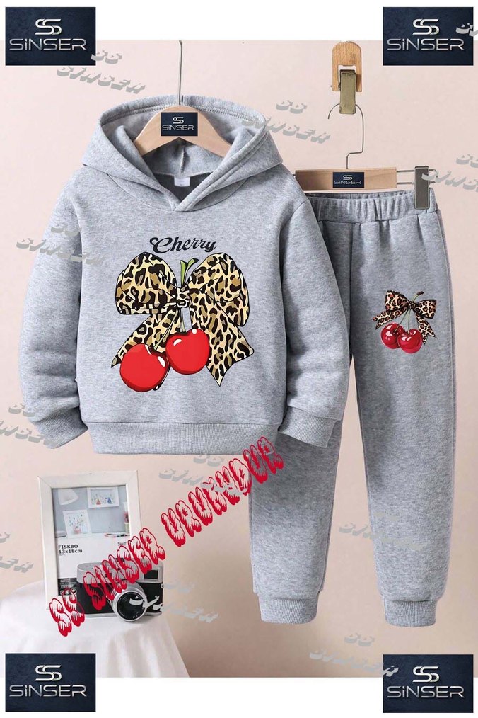 Bu erkek çocuk gri eşofman takımı, rahat kesim ve bisiklet yaka sweatshirt ile pantolondan oluşur. Yumuşak fleece kumaş, nakışlı kiraz ve fiyonk desenleriyle trend sokak tarzı sunar. Örgü detaylıdır.