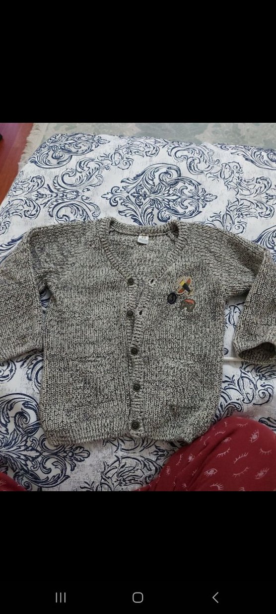 Gri Nakışlı Erkek Çocuk Örgü Hırka
