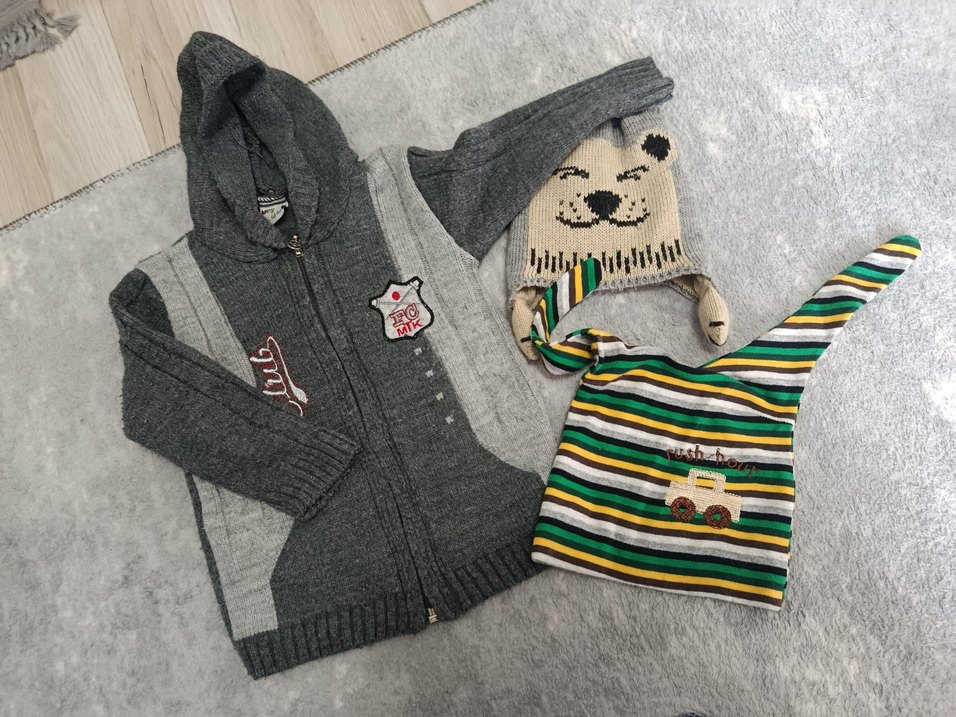 Gri renkli, nakışlı işlemelere sahip, uzun kollu ve bol kesim erkek çocuk triko hırka, sokak stili için uygundur. şapka 6-9 9-12 uygun hirka da 9-12 uygun toplu fiyat