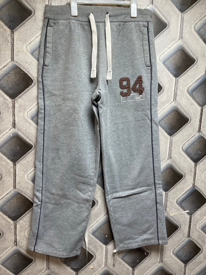 Nakışlı "94" detaylı gri eşofman altı, kemerli ve bol kesim. Yumuşak tüylü kumaştan, sportif sokak tarzı için uygun. ♂️