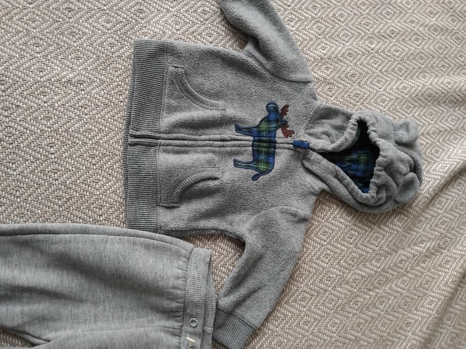 Gri renkte, fermuarlı, nakışlı desenli, uzun kollu ve yakalı bebek erkek takımı, yumuşak ve sıcak kumaştan üretilmiştir. Resimlerdekiler gönderilecektir.