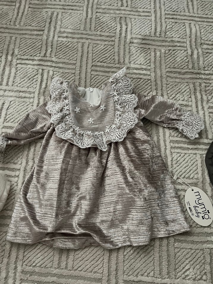 Gri renkli, uzun kollu ve tekne yakalı bu elbise, nakışlı desenler ve fırfır detaylarına sahip. Bol kesimli, klasik bohem tarzında kız çocuk elbisesi. Hediye geldi fakat hiç kullanılmadı