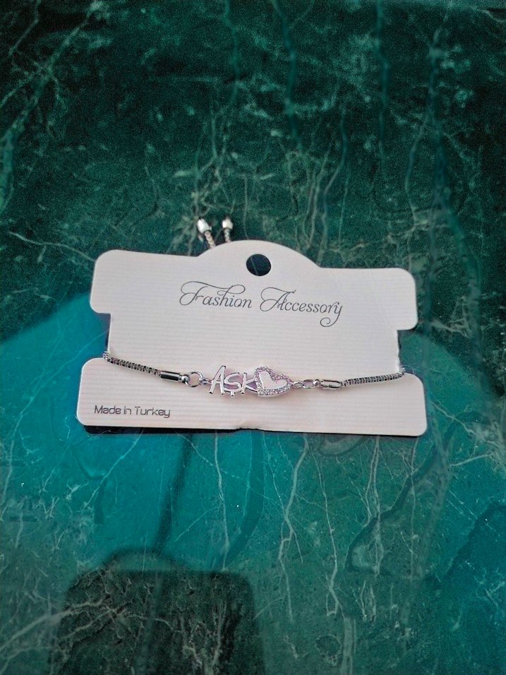 Gri renkte, 'Aşk' yazısı ve kalp işlemeli kadın bileklik, günlük sokak stiline uygun, fermuarlı kapanışı ile güvenli kullanım sağlar.