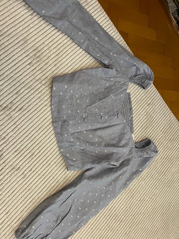 uzun kollu, kayık yaka ve nakışlı detaylara sahip kadın bluz. 36-38 uyumlu sırtı lastikli