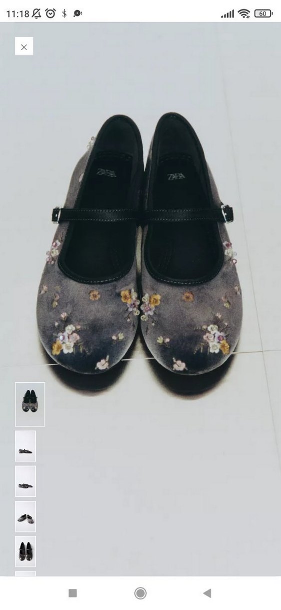 Gri renkte, nakışlı çiçek desenli dolgu topuklu babet. Tokalı kayış ve kauçuk tabanlı, vintage tarzı günlük rahatlık sunar.