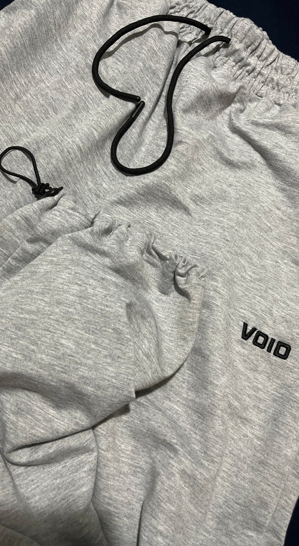 Gri keten, nakış detaylı, fermuarlı cepleri olan bol kesim kadın şort eşofman. Elastik bel bandı ve "VOID" nakışı bulunur. Rahat ve şık.