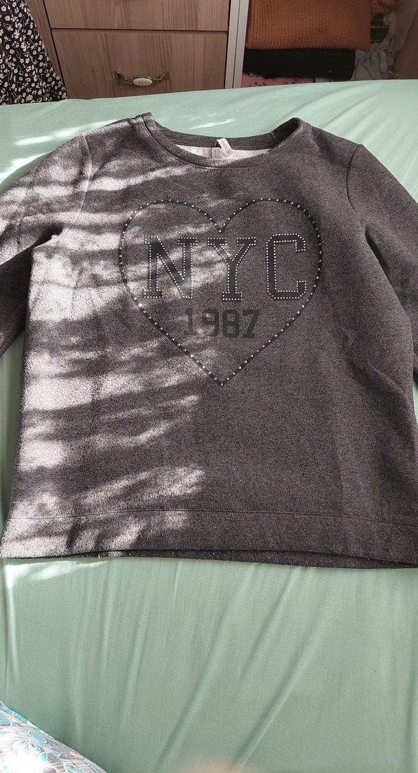 Gri pamuklu, yuvarlak yaka ve uzun kollu rahat kesim sweatshirt. Önde örme doku ve baskılı NYC 1987 tasarımı bulunur. Günlük kullanıma uygundur.