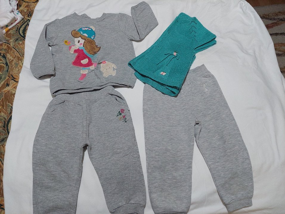 Gri renkte, kız çocuk detaylı uzun kollu üst, uyumlu esofman ve örgü yelekten oluşan bebek kız takımı. Yumuşak ve rahat kumaşla tasarlanmıştır.pamukludur