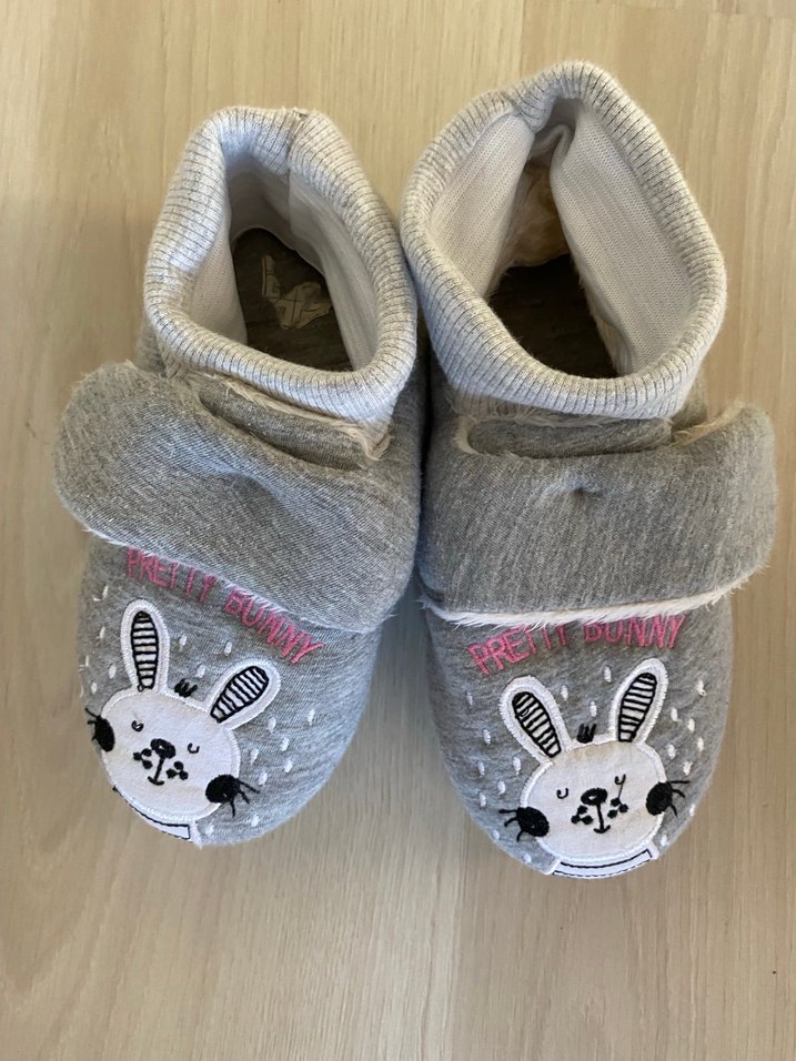 Gri renkli, nakışlı tavşan desenli, örgü detaylı ve yumuşak sıcak kumaştan kız çocuk terliği. Rahat ve gündelik stil için uygundur. 30-31 numara penti marka