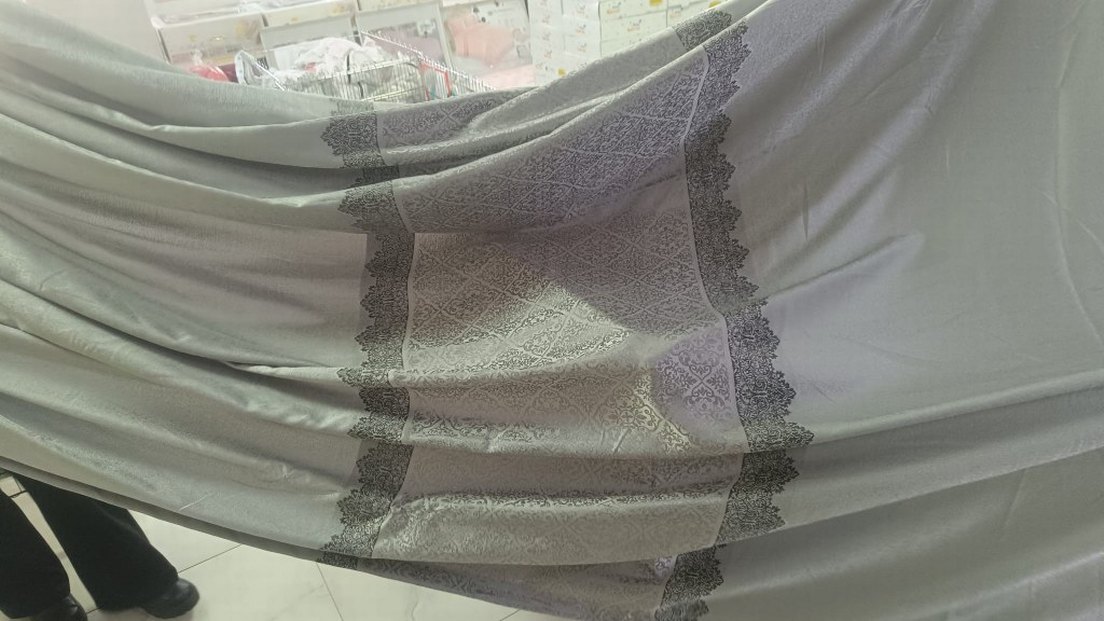 Gri renkte, konvansiyonel tarzda işlenmiş nakış detaylarına sahip perde, mekana zarif bir dokunuş katar.