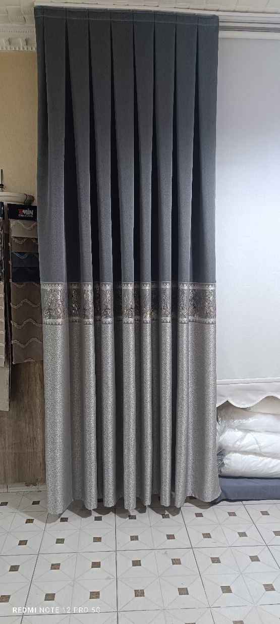 Gri Nakışlı Konvansiyonel Perde