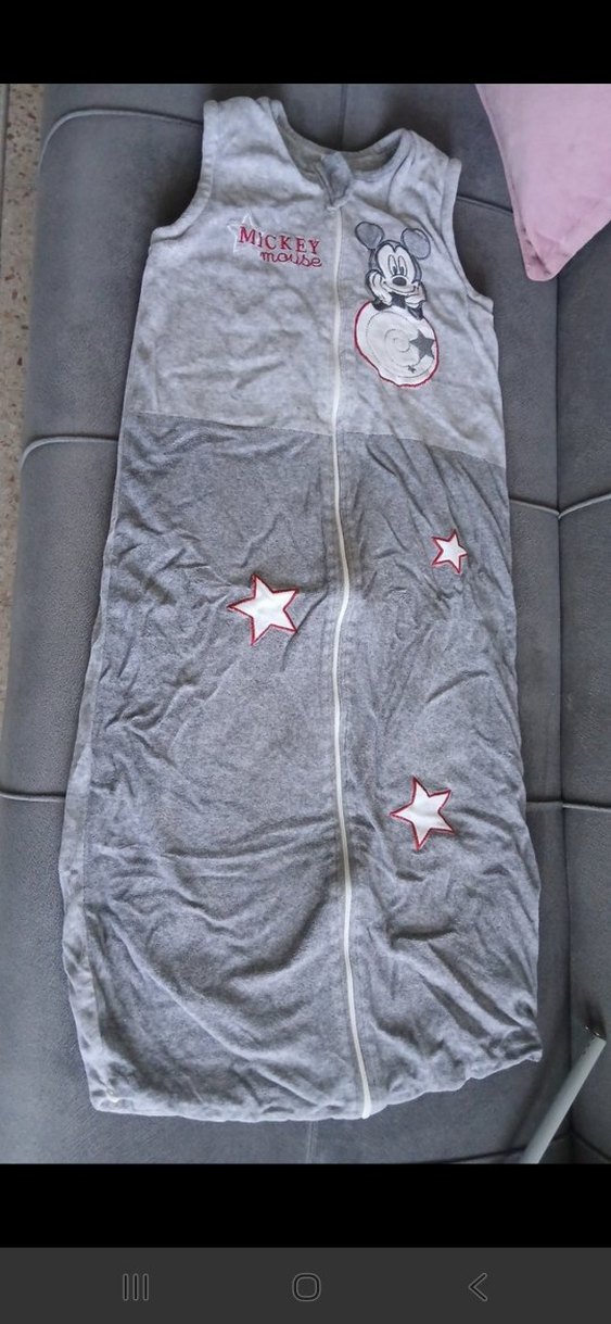 Yumuşak kumaştan yapılmış gri çocuk uyku tulumu, nakışlı Mickey Mouse ve yıldız desenlerine sahiptir. Önde kolay kullanım için fermuar bulunur. Alttan düğmeli ayarlanabilir.takma kolları vardı biz kullanmadık sanırım atıldı fotoğraflarda göründüğü gibidir