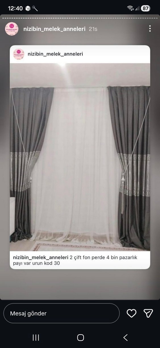 Gri renkli, nakışlı desenlere sahip modern klasik tarzda fon perde. İki çift fon perde 3.500 tl sıfır kusuru yok deforme yok