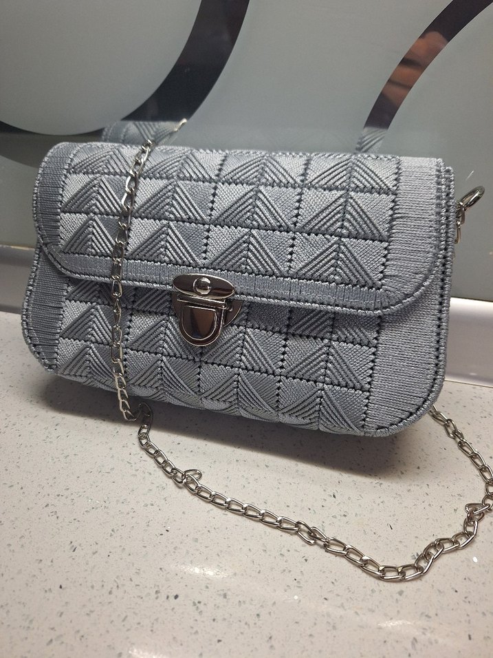 Gri nakışlı ve tokalı kapaklı, sentetik kumaştan yapılmış kadın çantasıdır. Zincir askılı, modern klasik tarzda ve günlük kullanım için uygundur. Çift kat ipten yapılmıştır.emegi cok.cok düşük teklifler vermeyin lütfen #kanvas#kanvasçanta#kadincanta#abiyecanta#gricanta