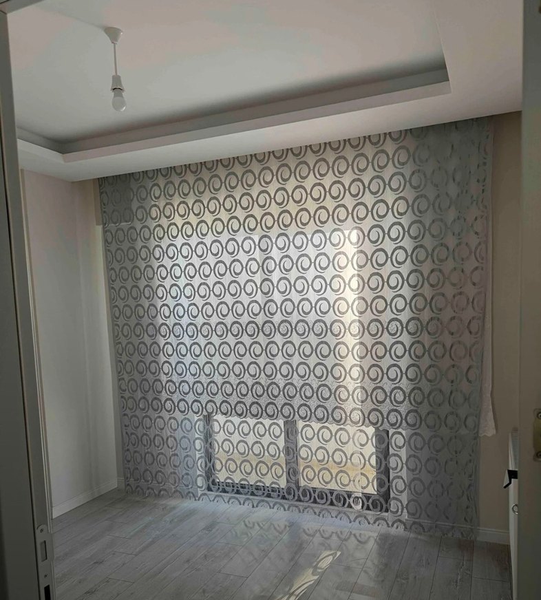 Gri renkte, nakışlı desenli ve modern tarzda tasarlanmış perdeler, mekâna şıklık ve doku katar. Eni 280 boyu 270
