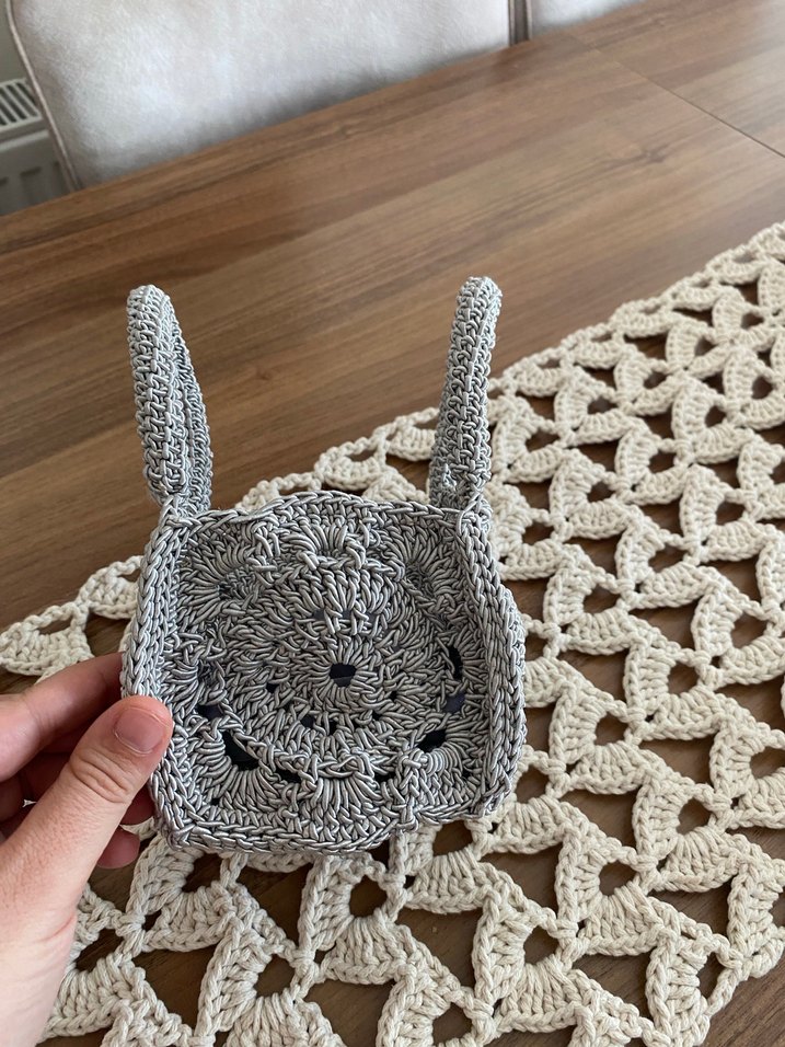 Gri nakışlı dantel detaylı örgü kadın çanta, özel günlerinizde kullanabilirsiniz