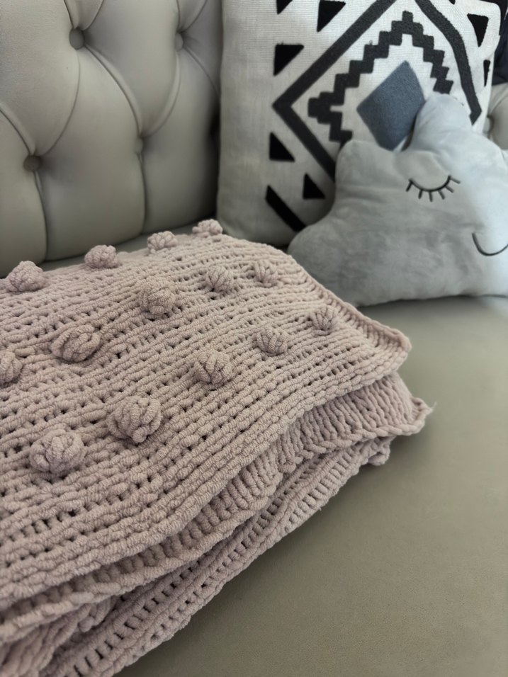 Gri Nakışlı Örgü Çocuk Battaniyesi