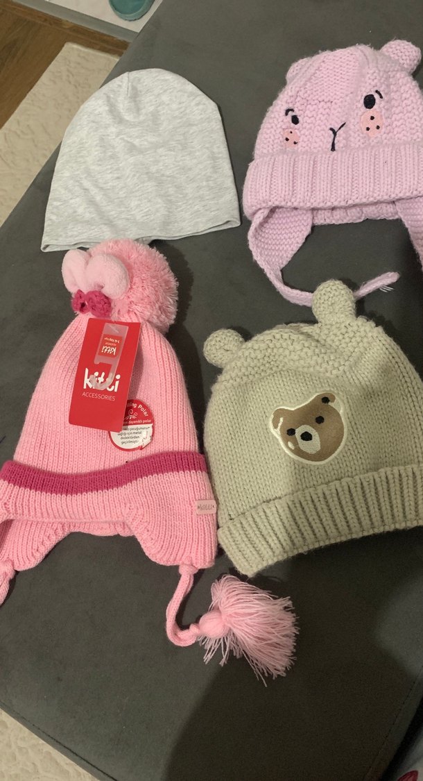 Nakışlı ayı desenli, kulaklıklı ve püsküllü gri örgü çocuk bere. Kitli markasına ait, sıcak ve şık sokak giyimi tarzında.