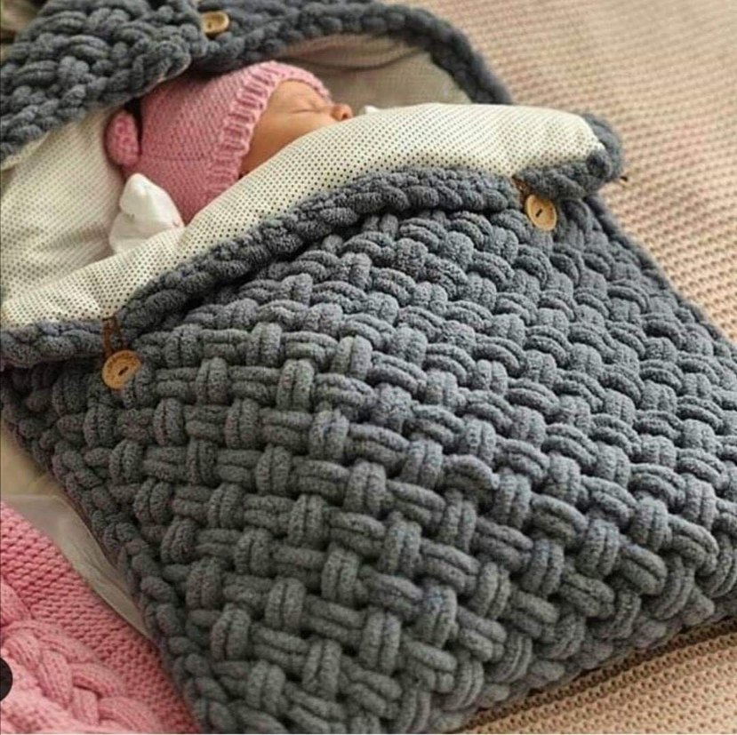 Gri Nakışlı Örgü Çocuk Puffy kundak Battaniye