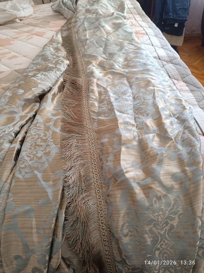 Gri renkte, nakışlı desenli ve kenarında püsküller bulunan klasik tarzda perde. İki adet fiyatıdır