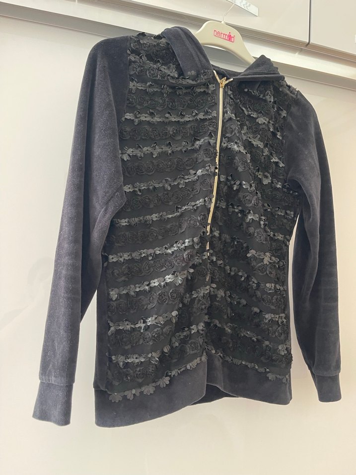 Yumuşak süetten yapılmış, nakış detaylı, fermuarlı ve yüksek yakalı, uzun kollu, normal midi uzunlukta, rahat ve gotik tarzda kadın ceketi.