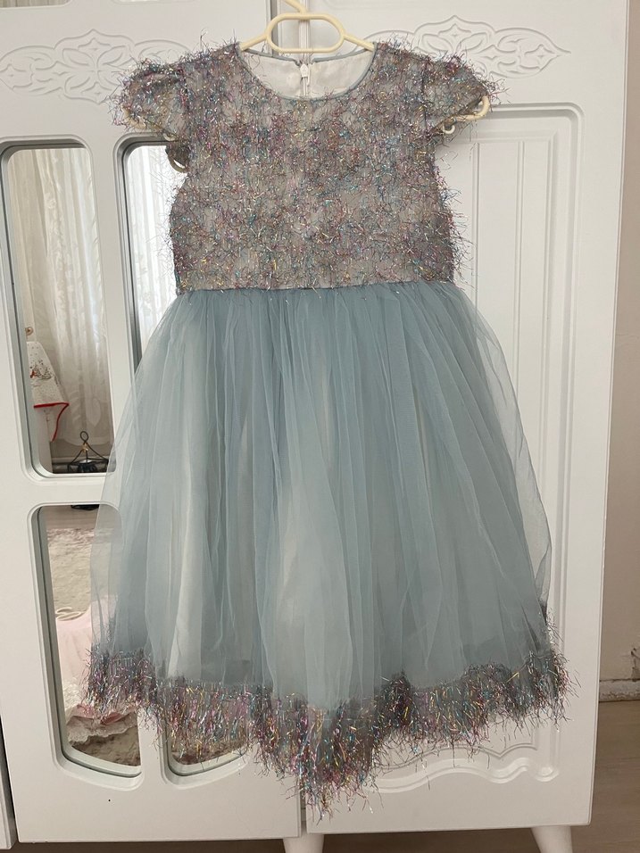 Gri Nakışlı Tül Çocuk Elbisesi