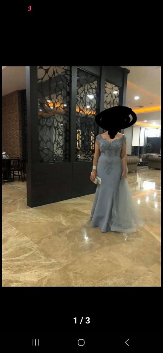 Gri Nakışlı Uzun Abiye Elbise