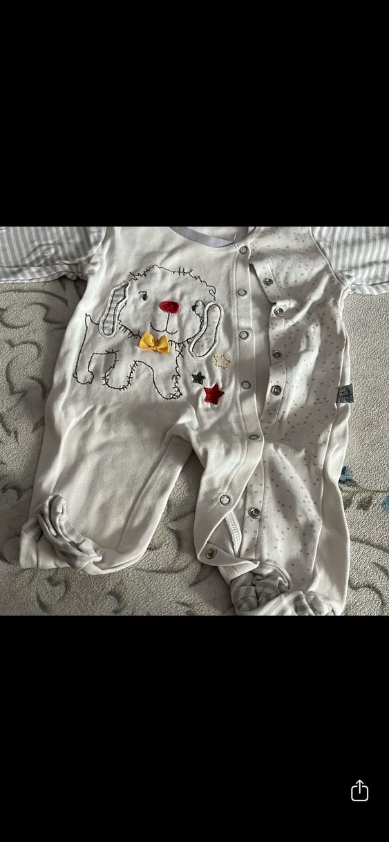 Gri renkli, uzun kollu ve düğmeli bebek tulumu, yumuşak kumaştan üretilmiş, nakışlı köpek deseniyle sokak modası tarzında tasarlanmıştır. Resımde gorundugu gıbıdır sıkıntısı yoktur