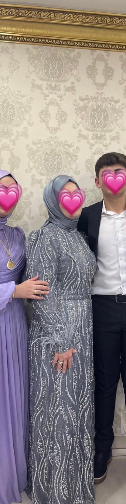 Gri renkli, uzun kollu abiye elbise nakışlı ve kollarında kürk detayları vardır. Tekne yaka ve rahat kesime sahiptir, düğünler için uygundur. Elbisenin şalı da var şalla beraber gönderim sağlanacak. Sadece 1 defa giyildi. 44 beden arkadan daralttım ama açılabilir.