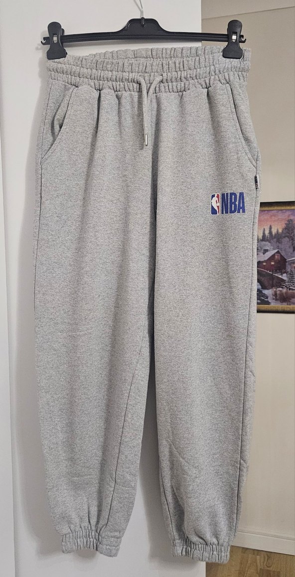NBA baskılı gri, bol kesim erkek eşofman altı, yumuşak ve sıcak kumaş, elastik bel, spor ve günlük kullanım için uygun.