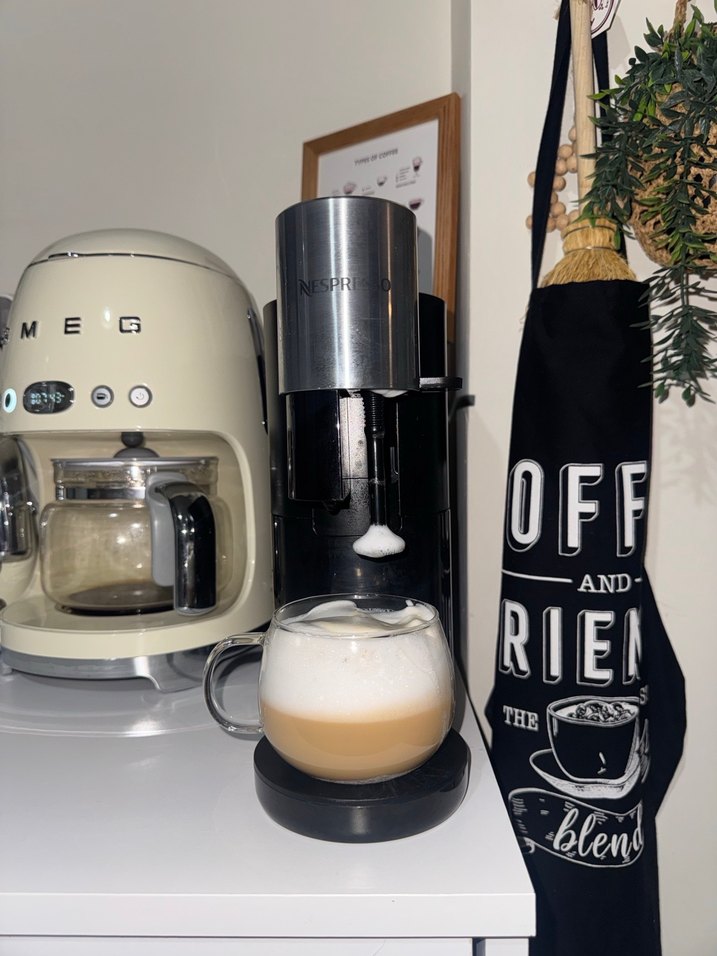 Gri renkli Nespresso kahve makinesi, kremamsı köpükle zengin espresso hazırlar. Metal görünümlü ve kompakt tasarıma sahiptir. ☕️ garantisi hala mevcut media markttan aldım 6 ay kadar kullandım faturalı ürün fazla olduğu için satıyorum .