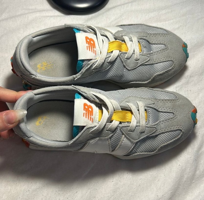 New Balance markalı, gri baskılı ve blok topuklu kadın spor ayakkabısıdır. Lastik tabanlı ve destek için cırt cırtlıdır. Kardeşime küçük geldiği için satıyorum 32,5 bağzi çıktık iplikleri var ama kargoya verilmeden önce hallederiz