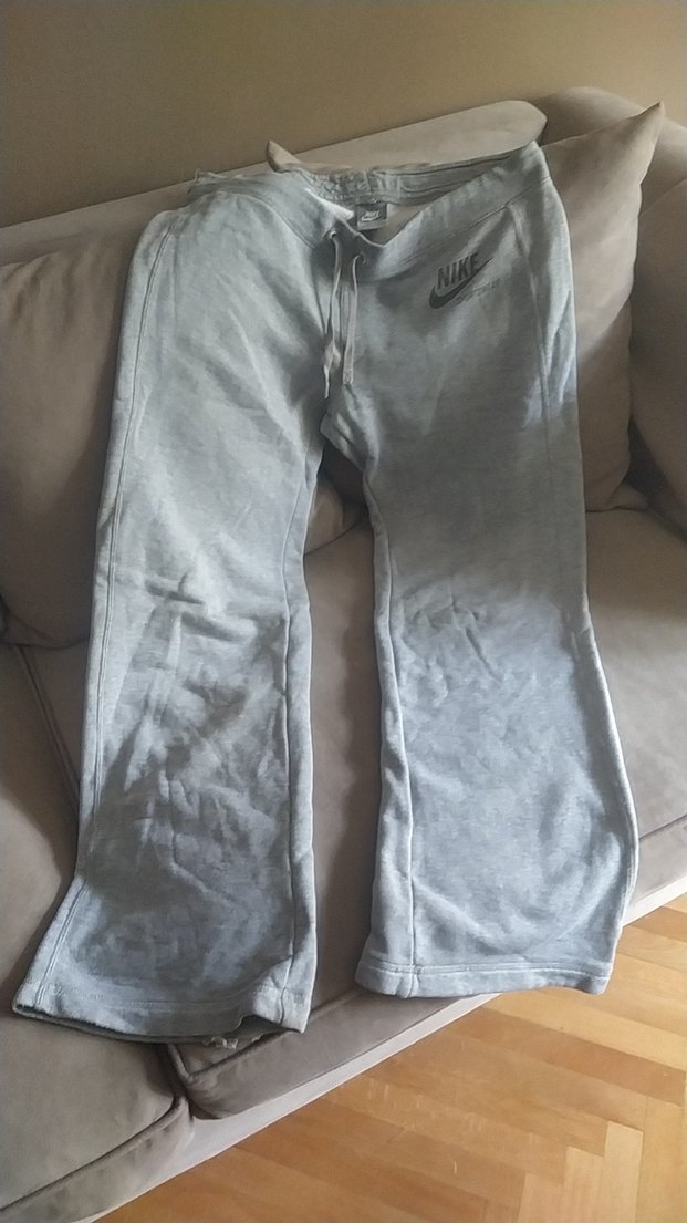 Gri Nike bol paça spor eşofmanı, normal boyda, yumuşak denim görünümlü kumaştan üretilmiştir. Spor ve rahat kullanım için uygundur.